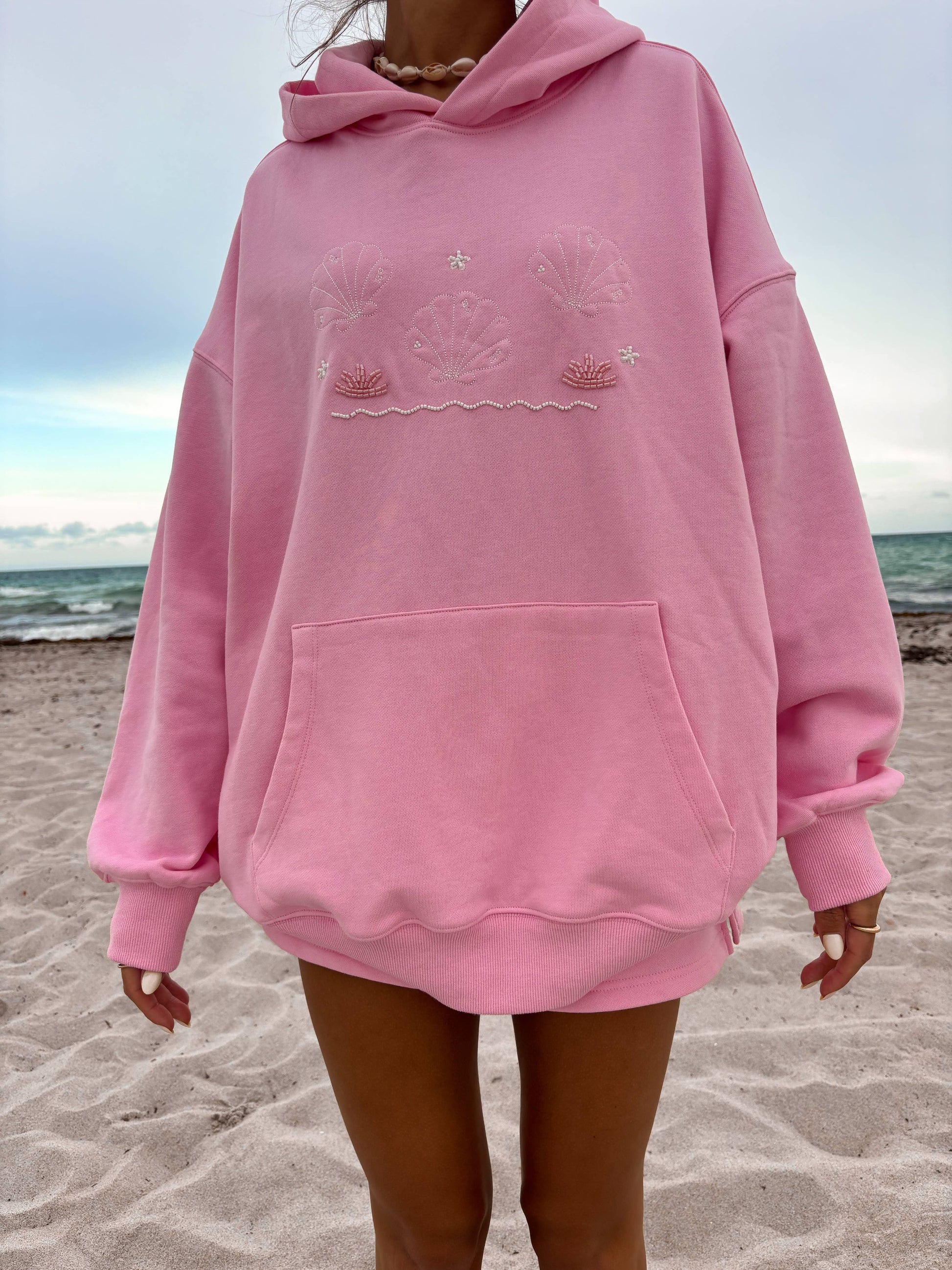 Lottie Pink Bikini Beaded Ocean Hoodie 100% Cotton