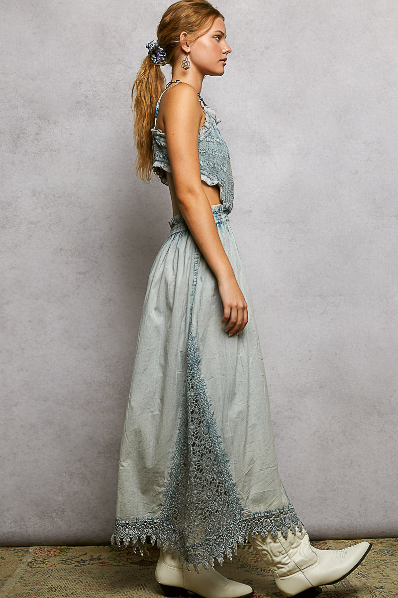 POL Smocked shirred ruffle dress